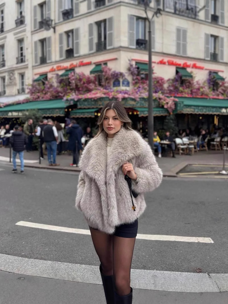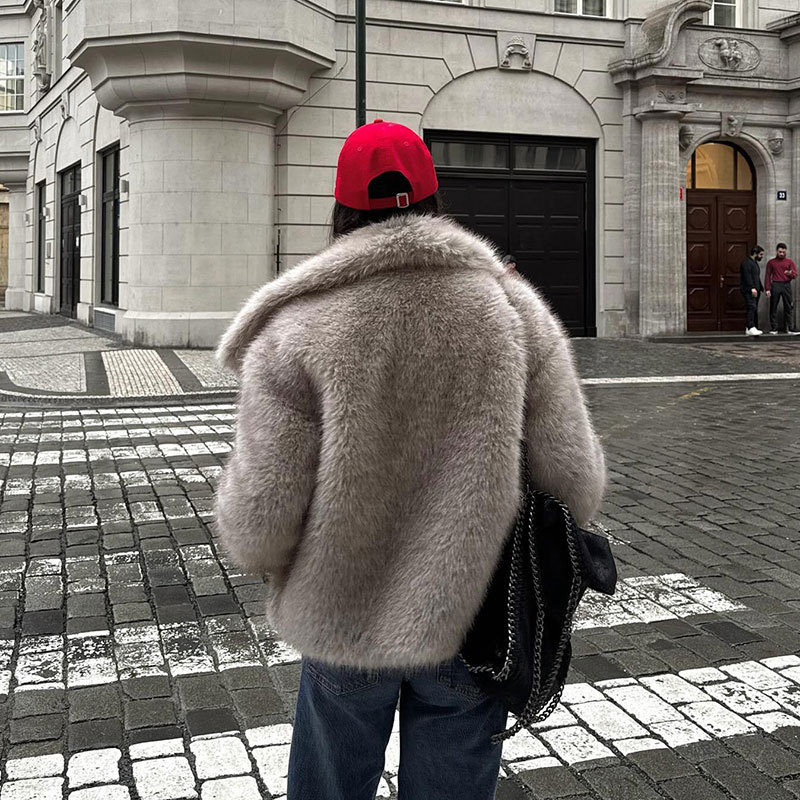 Amazon European and American Cross-Border Wholesale 2025 Autumn and Winter Women's Pure Color Artificial Fur Lapel Outwear Women's Outwear